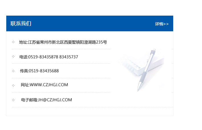 傳真:0519-83435688    郵編:213135    網址:WWW.czjhgj_com.bsotc.com    電子郵箱:JH@czjhgj_com.bsotc.com